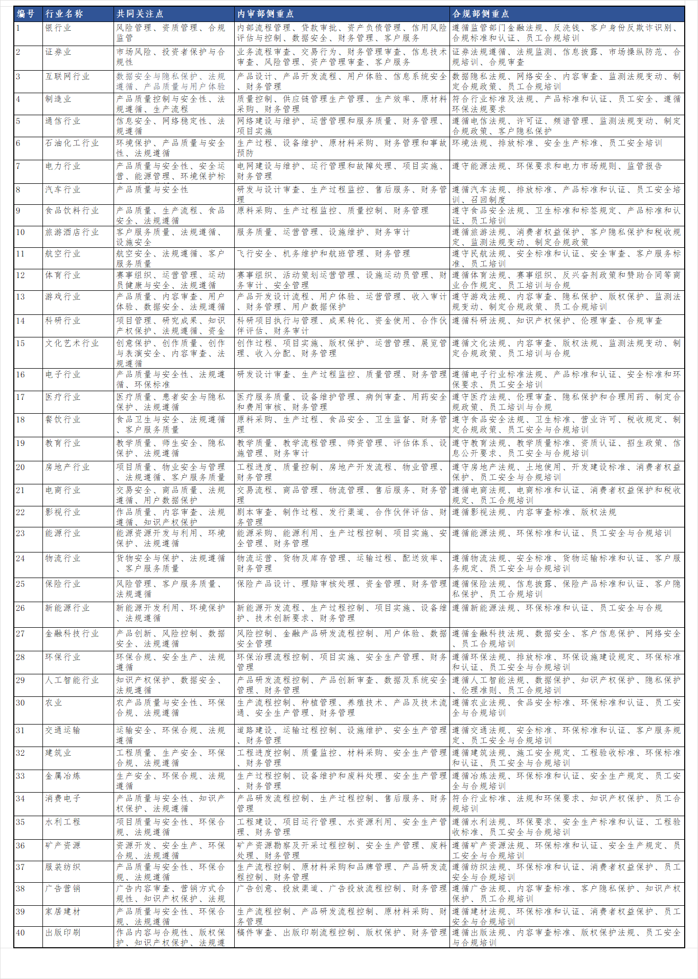 在不同行业的业务场景下,内审部与合规部在实际运作方式上会有区别。以下是群竞咨询为您汇总的40个主要行业业务场景。
